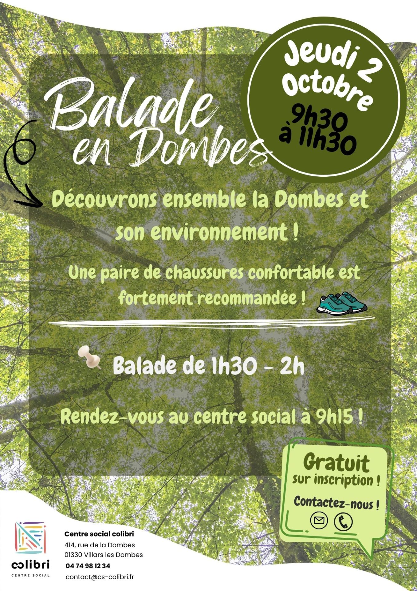 ATTENTION Changement de date : La prochaine balade est le 2 octobre 2025, départ 9h30 du centre social Colibri (nous assurons le transport).